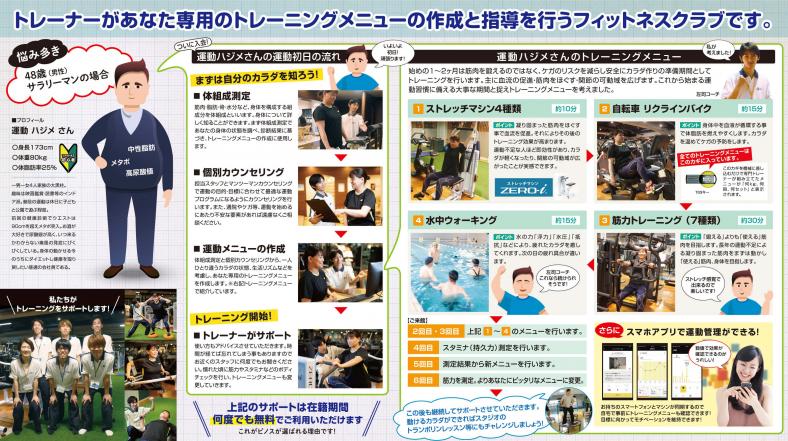 運動を日常的に行っている、インストラクターには気づけない視点でした。ピノス洛西口では、ご入会者の皆さんに、「運動目的」「目標」「身体の痛み」などその方の現状を伺い、その方の運動でのご希望なども伺い、その方に合わせたオーダーメイドのトレーニングメニューを作成しています。とその方にご説明すると。