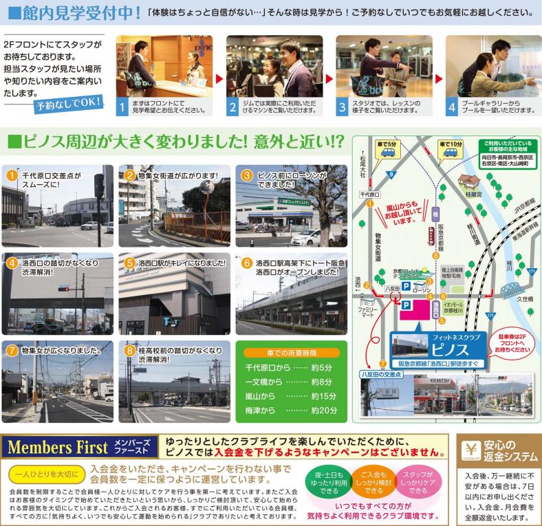 はじめから頑張りすぎると長続きせず、会費だけ払って、もったいないことになります。ピノス洛西口では、運動習慣を身につけて頂くため、スロースタートをおススメしています。