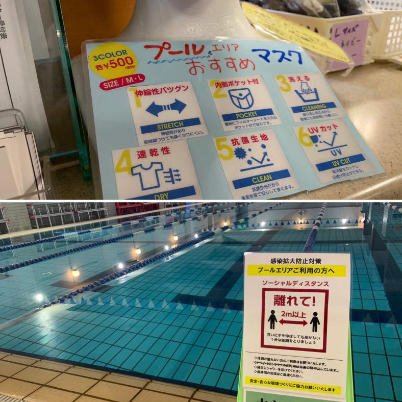 プールエリアはマスクができないエリアですが、ピノス洛西口では、「水着素材」のマスクを販売しています。皆さまにはプールエリアでのマスク着用をおススメしています。自分とその他の方のためにも。