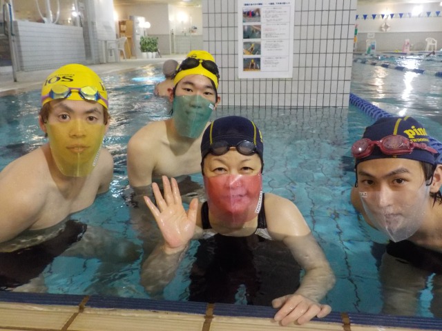 ・スイミングコーチは、日本スイミングクラブ協会が推奨する飛沫を防止するプール用マスクを着用し
