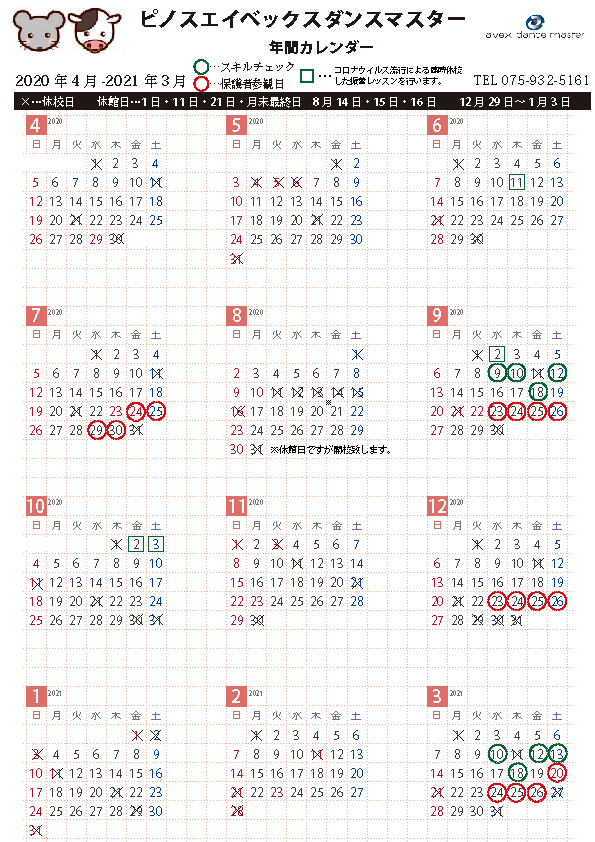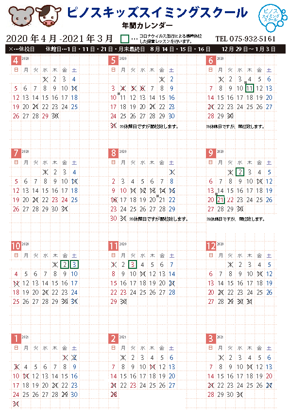 トップ > スクールカレンダー2020.4月~2021.3月