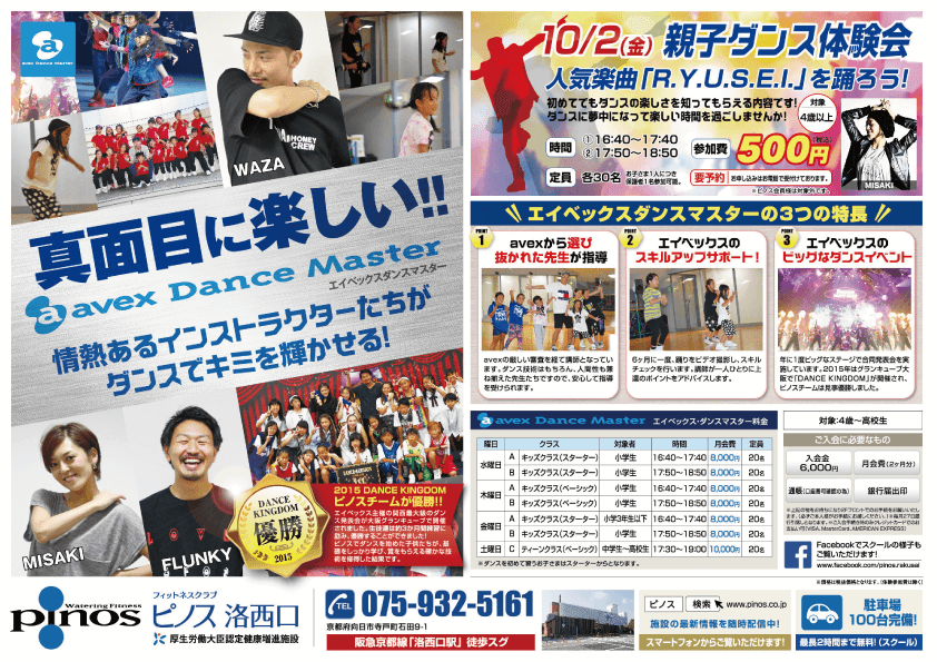 Jrスクール体験 未分類 2015年09月12日 少し涼しくなり秋らしくなってきました。運動会の練習をしている光景も 見られます。秋と言えばスポーツの秋。 お子様やお孫様に新しい習い事はいかがでしょうか。 ピノススクールは、スイミングスクール、ダンススクールがあります。 体験頂けますのでぜひ、ご検討ください。 特にダンス体験は10月2日に親子で参加頂けます。 あのランニングマンができるようになります。