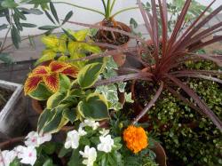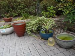 今日はまた新しい花を植えて、メダカの水を替えました。