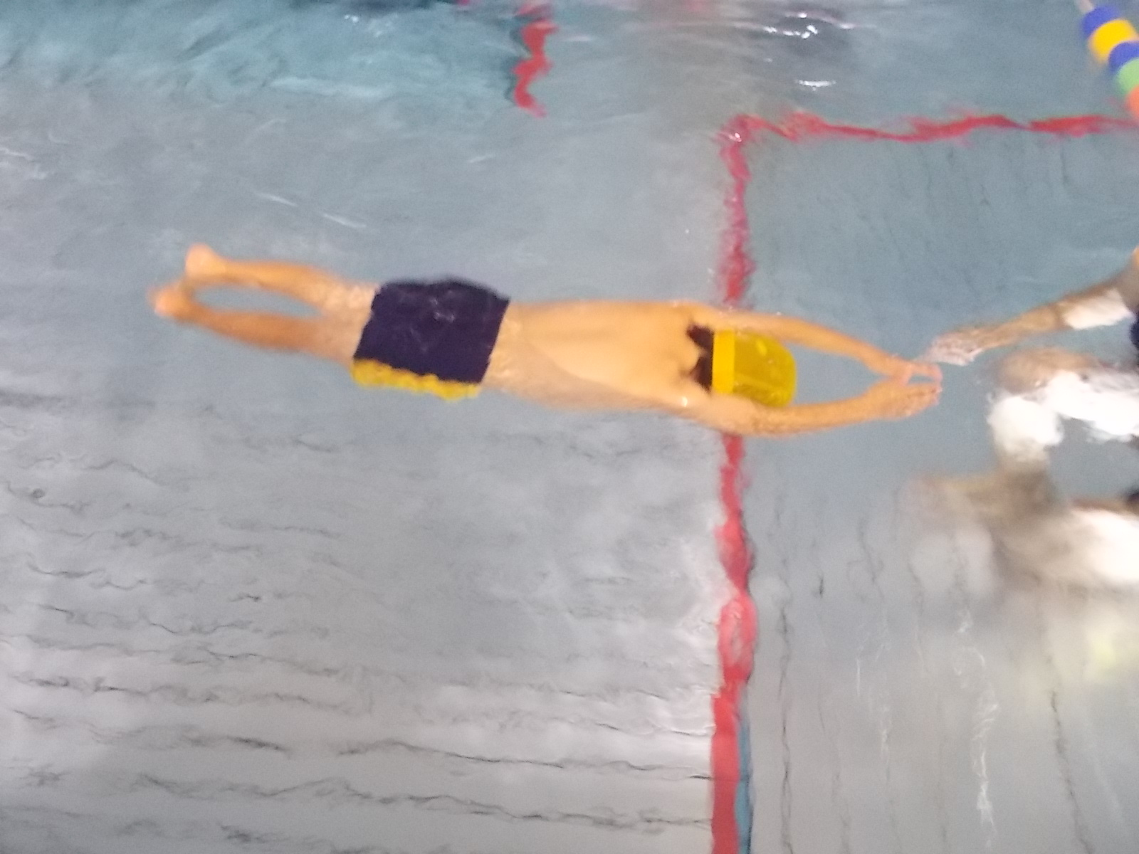おっ! すごい、一人でプールの底をけってジャーンプ!