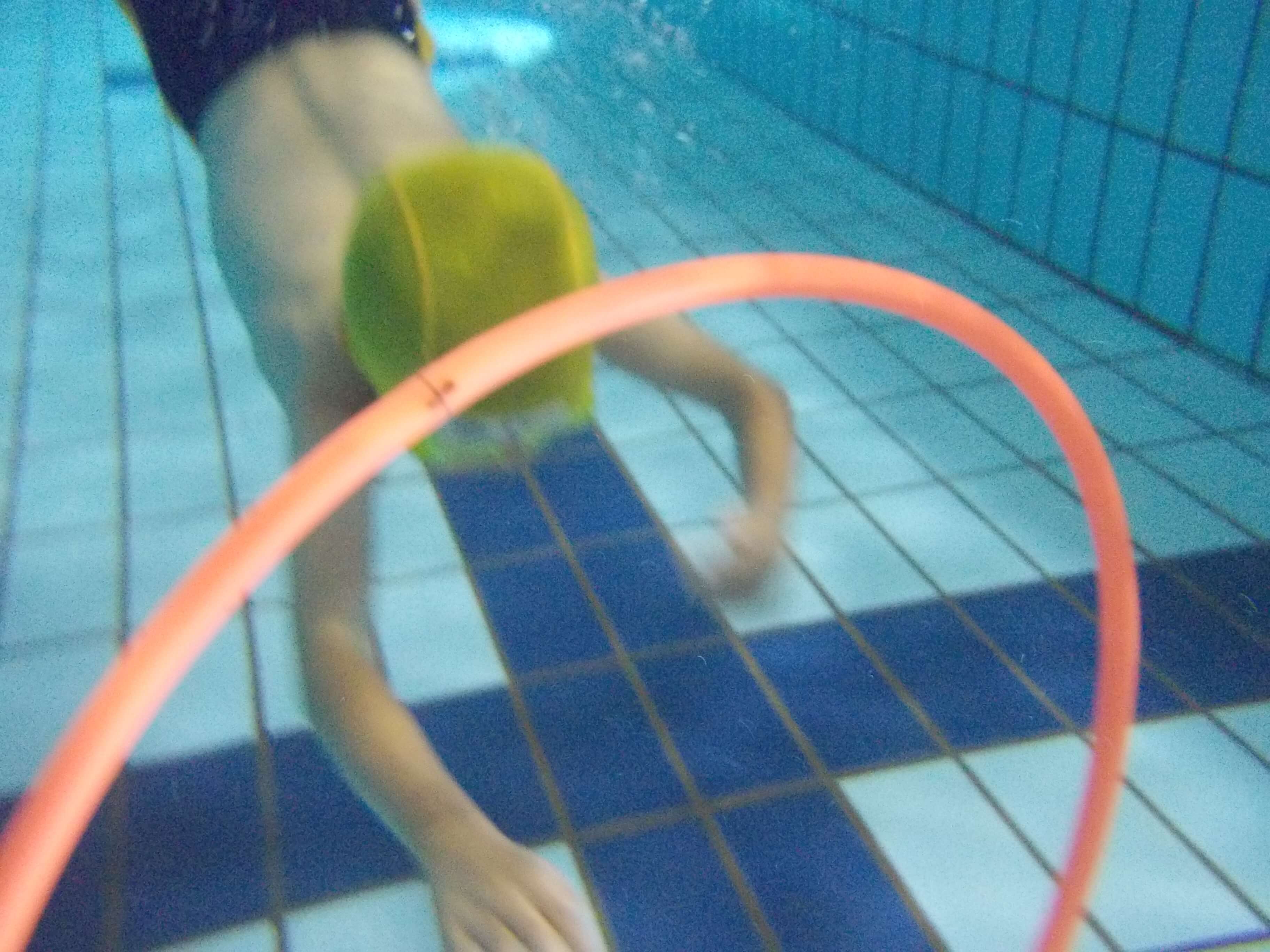 この日は、水中にあるフラフープをくぐってみました。