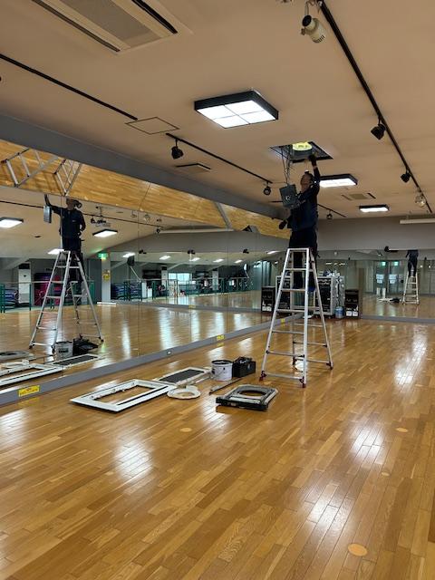 営業中に天井のエアコンにエラーが出て送風に切り替えてレッスンを実施。