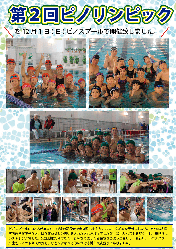 12月1日にピノスのプールで、水泳記録会“第2回ピノリンピック”を開催致しました。