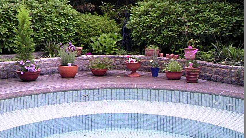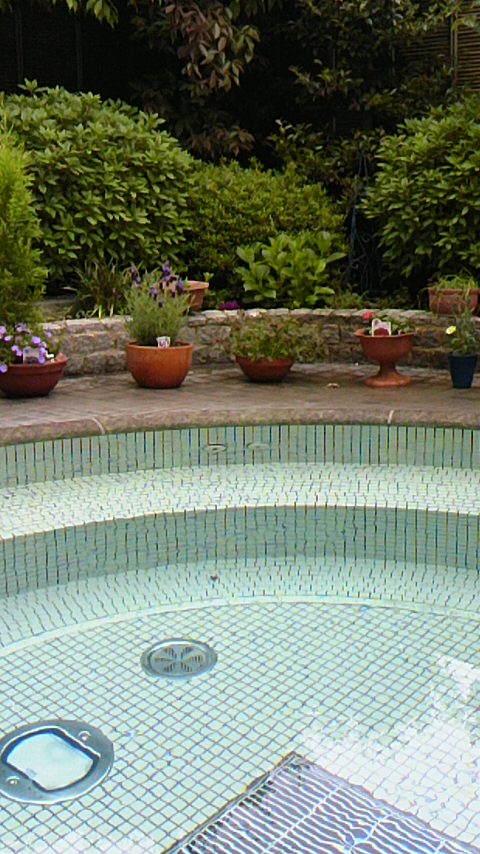 プールのジャグジーに新しいお花を植えました。