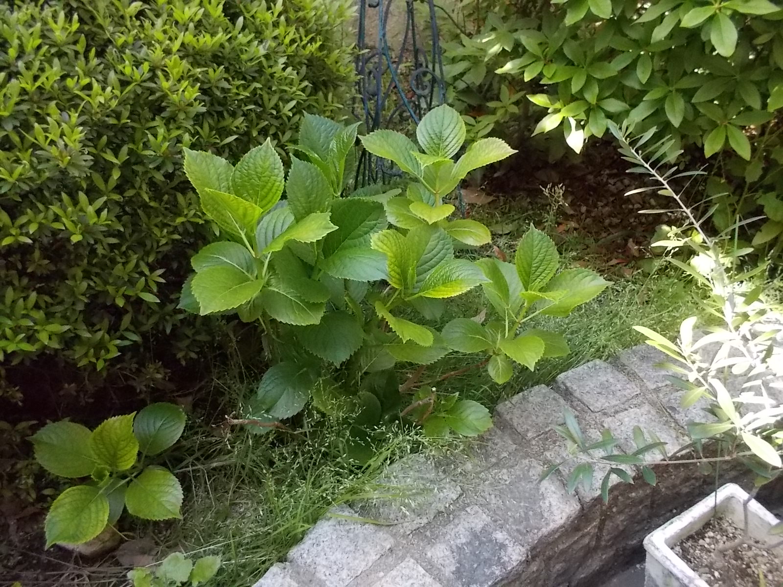 2種類のあじさいが植えてあります。4年前に咲いているあじさいを買ってたんですが、次の年もその次の年も咲きません。