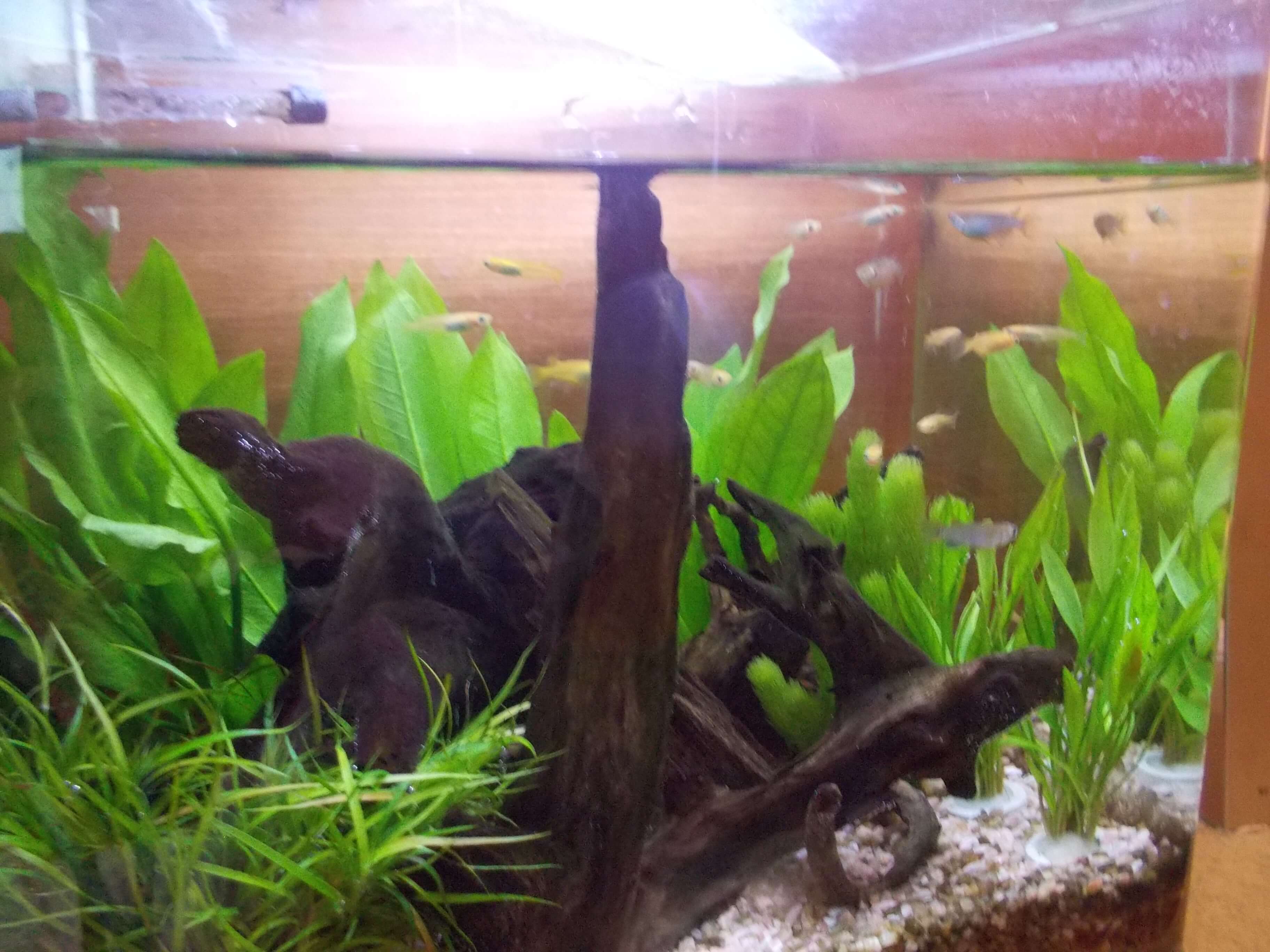 水槽に水草をたくさん植えてて春バージョンにしてみました。