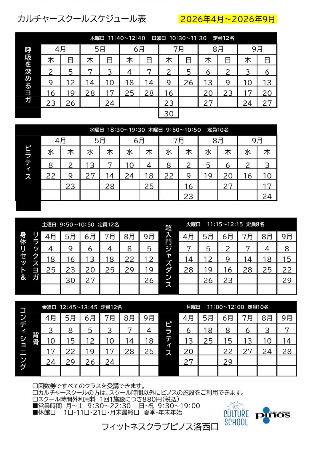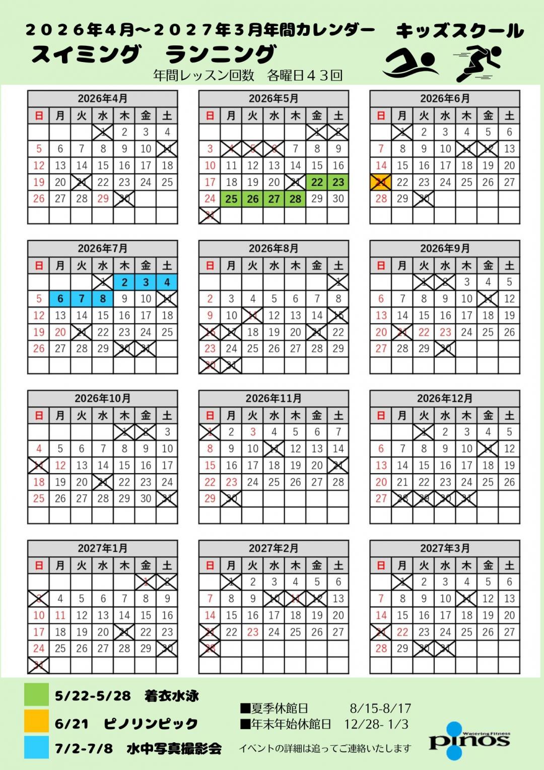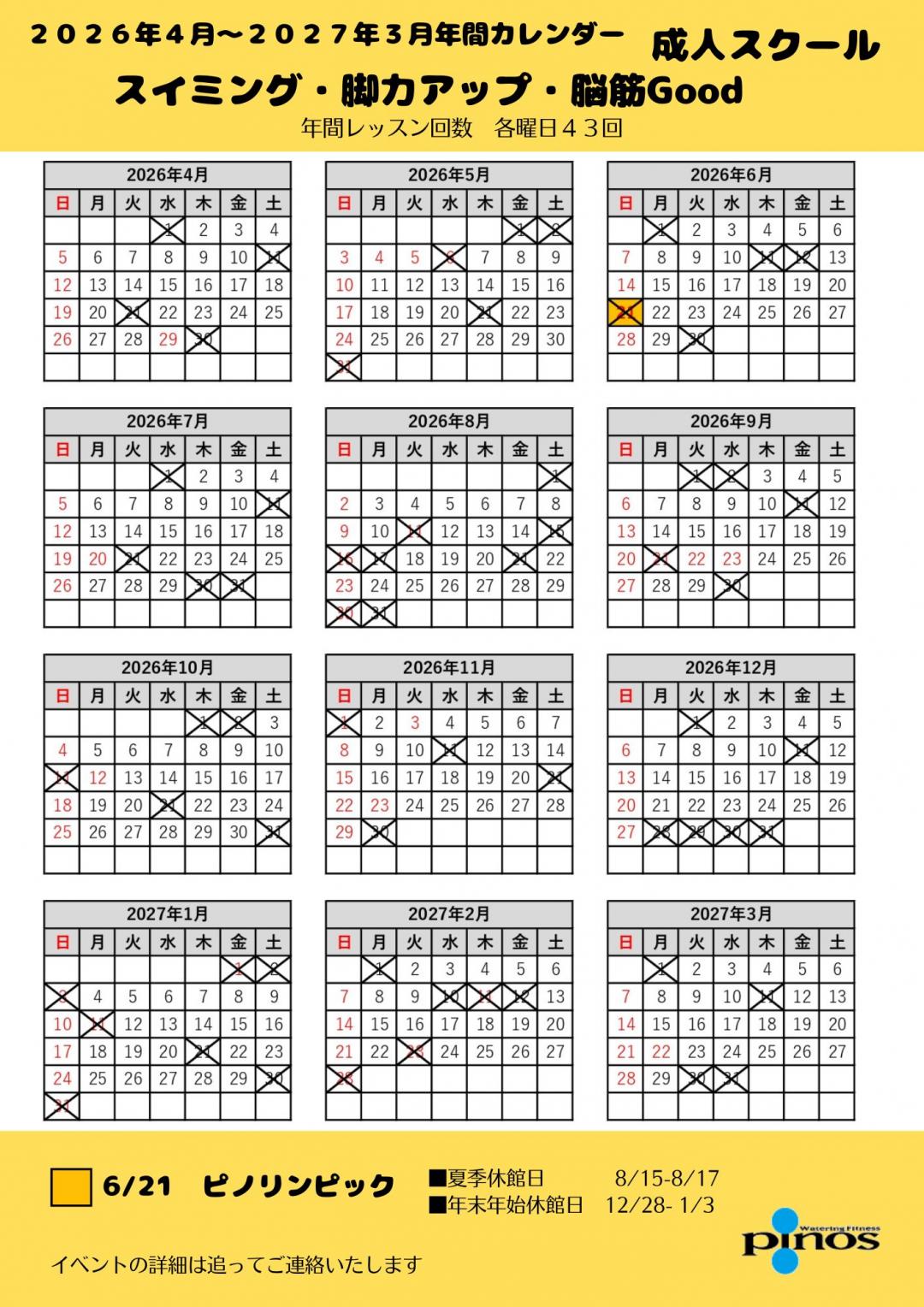 スクールカレンダー2026.4月~2027.3月
