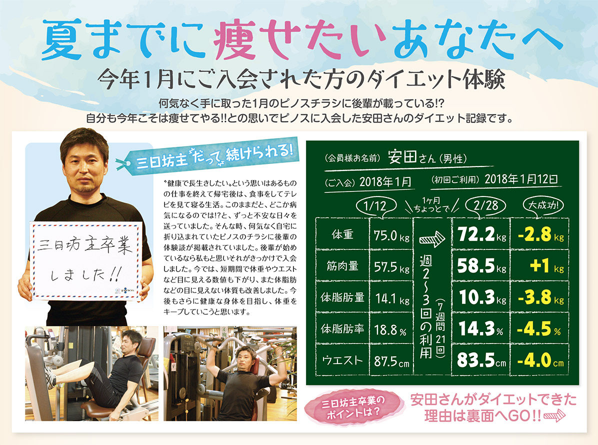 ピノスのチラシに後輩の体験談が掲載されて