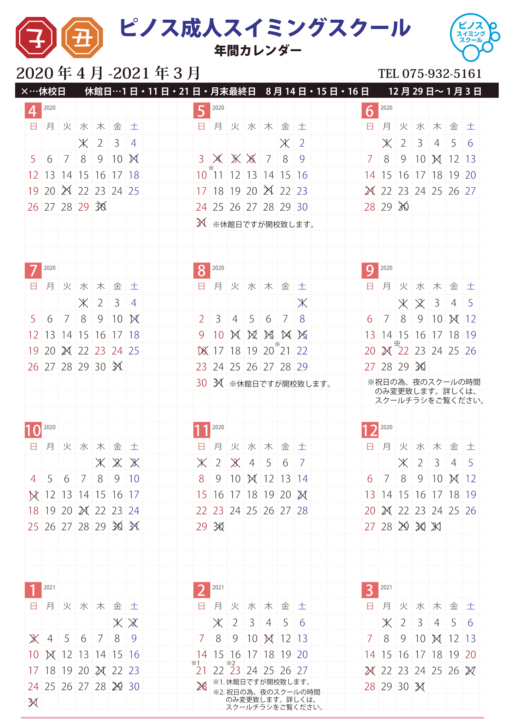 トップ > スクールカレンダー2020.4月~2021.3月