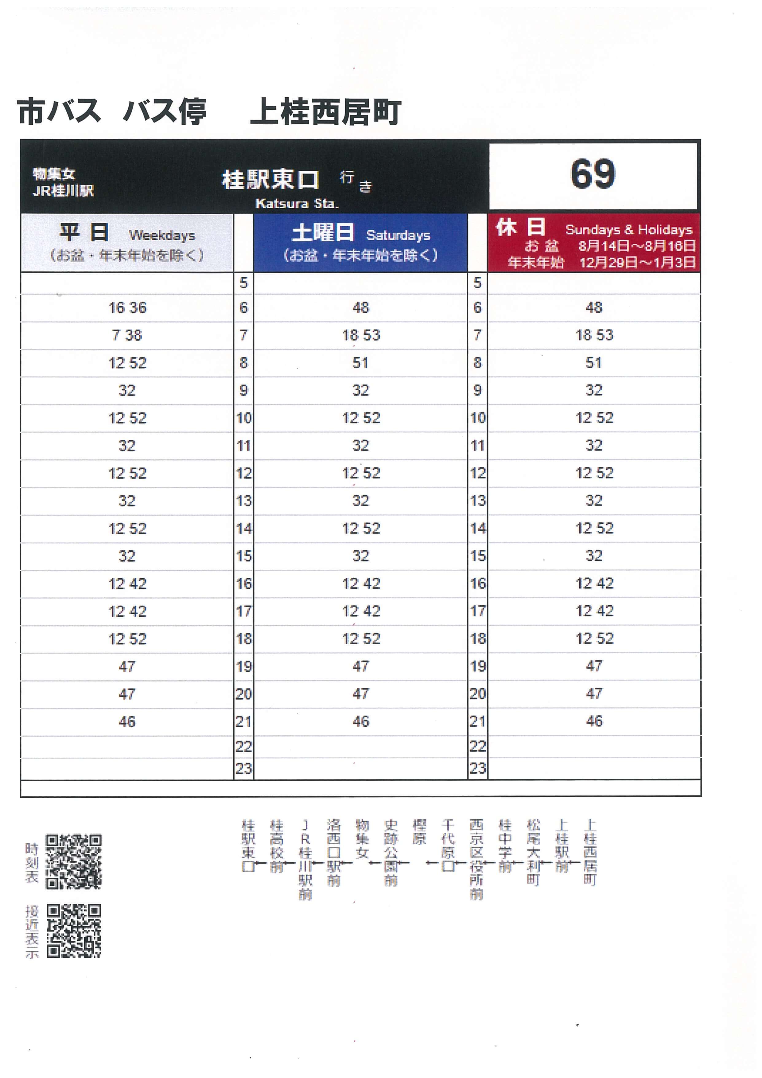 バス停「上桂西居町」14:44下車