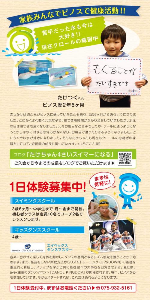 たけつぐくんの3歳6カ月からのピノスでの成長記録をピノスホームページのブログに掲載しています。ピノス課外イベントなど水泳以外の出来事もアップしています。こちらもチェックしてみてください