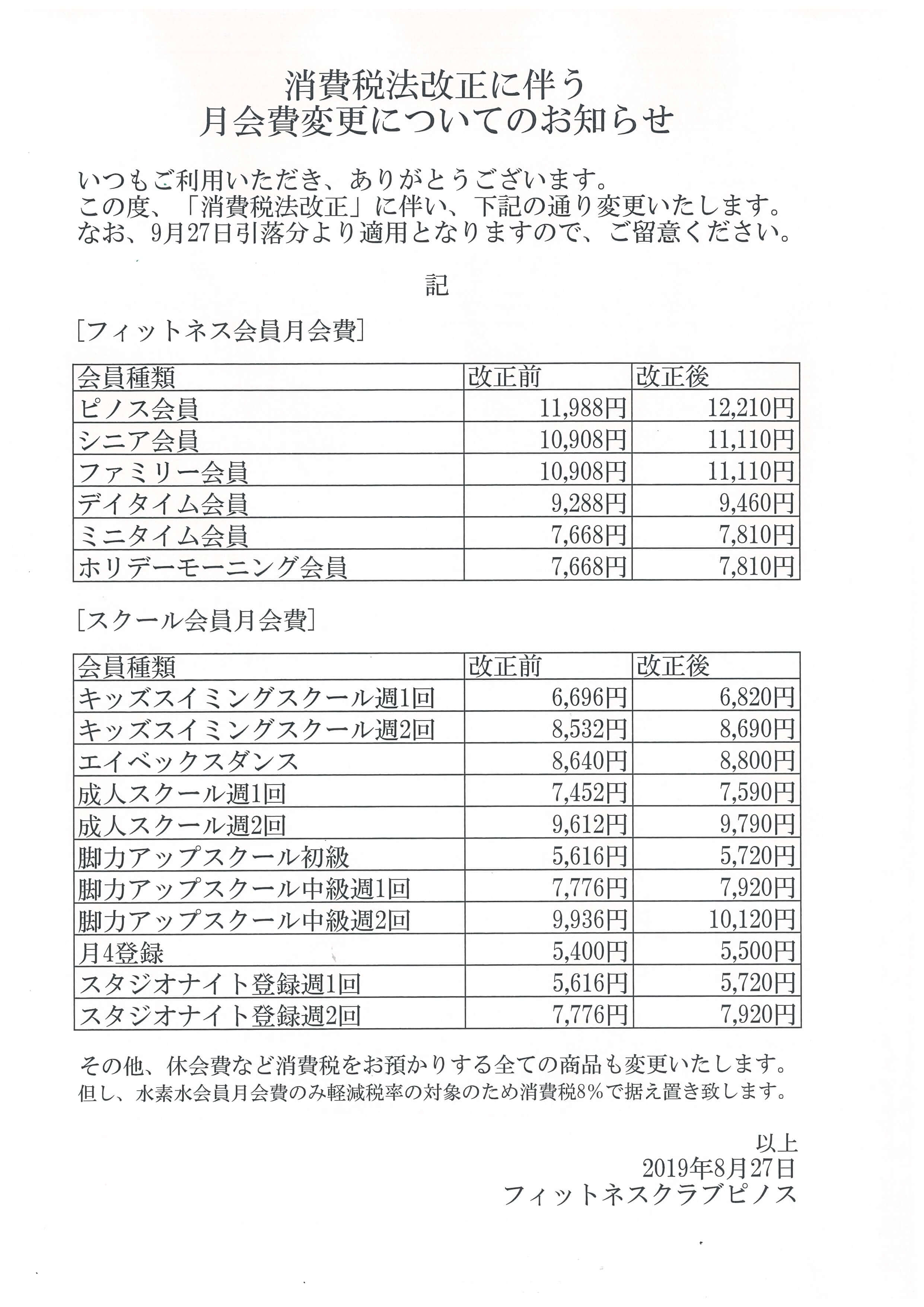 トップ > 消費税法改正に伴う月会費等の変更のお知らせ