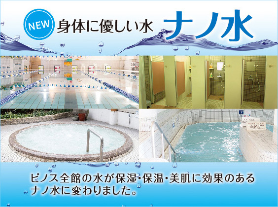 2020年1月から館内の水全てが「ナノ水」になります。保湿作用・保温作用・浸透作用でお肌がすべすべに。午前中は運動・夜はお風呂だけ。そのような活用をされている方が多いです!