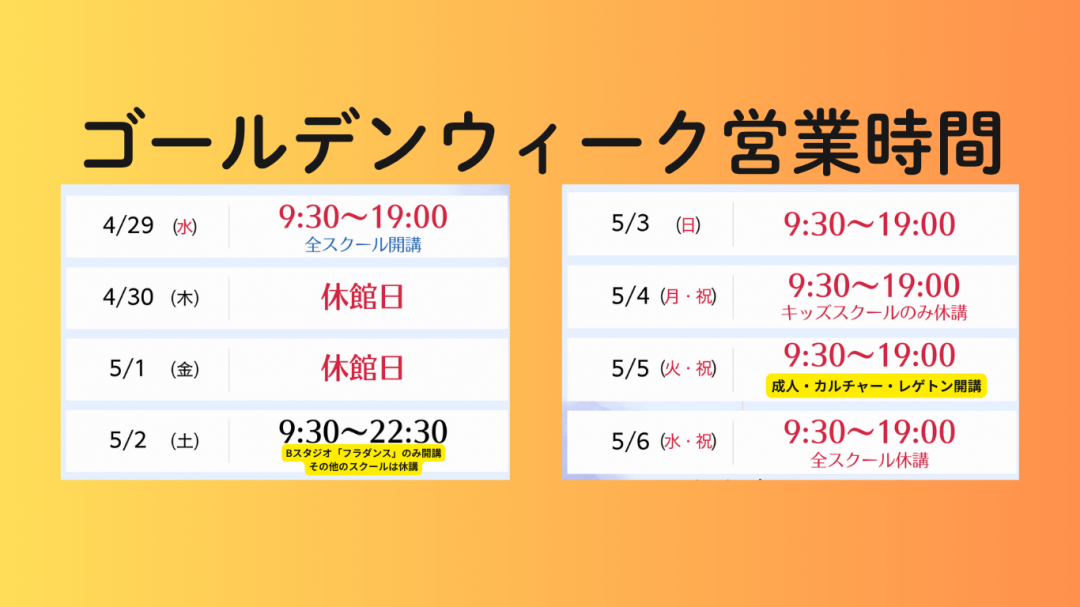 トップ > ゴールデンウィーク営業時間のお知らせ