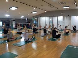 脳の活性化の為の簡単そうな動きを行います。簡単そうなというのは、見た目「できる、できる」と思うのですが、実際行うとまったくできない。笑ってしまうほどできません。皆さんできない自分に大笑い。担当の山崎コーチが一番できていないという噂もありますが・・・。とにかく大笑いだそうです。