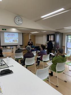 第1回目にご参加の方がお友達をお誘いいただきお越しくださいました。今回はヤクルトさんが来られ、「血管年齢」の測定と腸内細菌のお話がありました。健康体操後には、販売前の大豆珈琲が出され、みなさんと和気あいあいな時間を過ごすことができました!