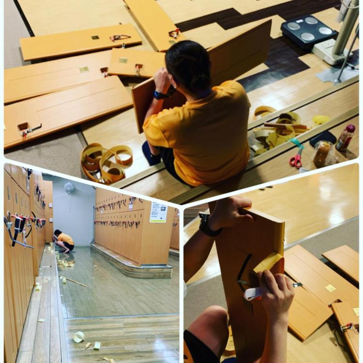 西田コーチは出勤し、ロッカーの扉の補修をプロ顔負けのテクニックで、一心不乱に。約5時間かけて綺麗にしてくれています!あまり気づかないところですが、指を切ってしまう恐れがありますので。きっちり丁寧に補修をしています~