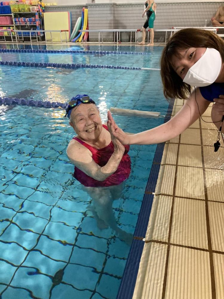実は、99歳最後の日に、「ピノリンピック」というピノスの水泳記録会がありました。出場を打診すると「喜んで~」と昨日、2種目に出場されました。25m完泳。