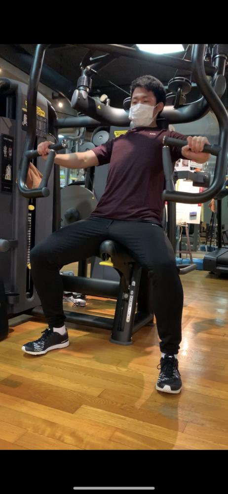写真は、肩や胸を鍛えるマシンです。