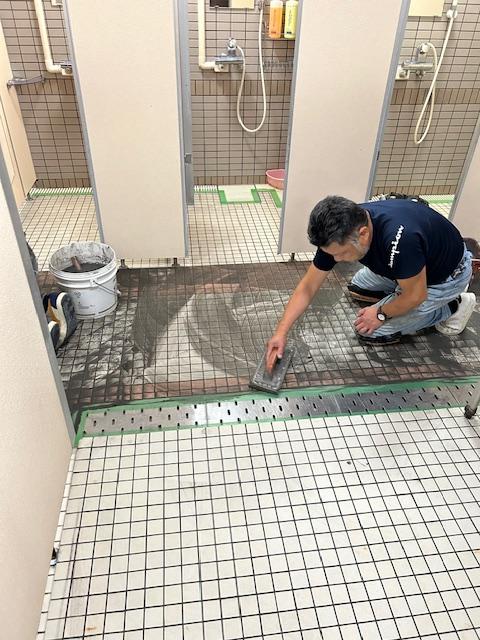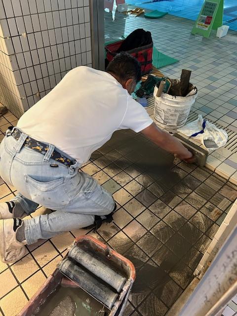 また、プールトイレ前の廊下全面とプールシャワールームの床全面です。