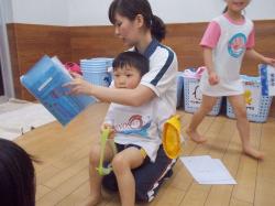 今、たけちゃんはペンギンクラスで、ヘルパーを付け綺麗な姿勢で