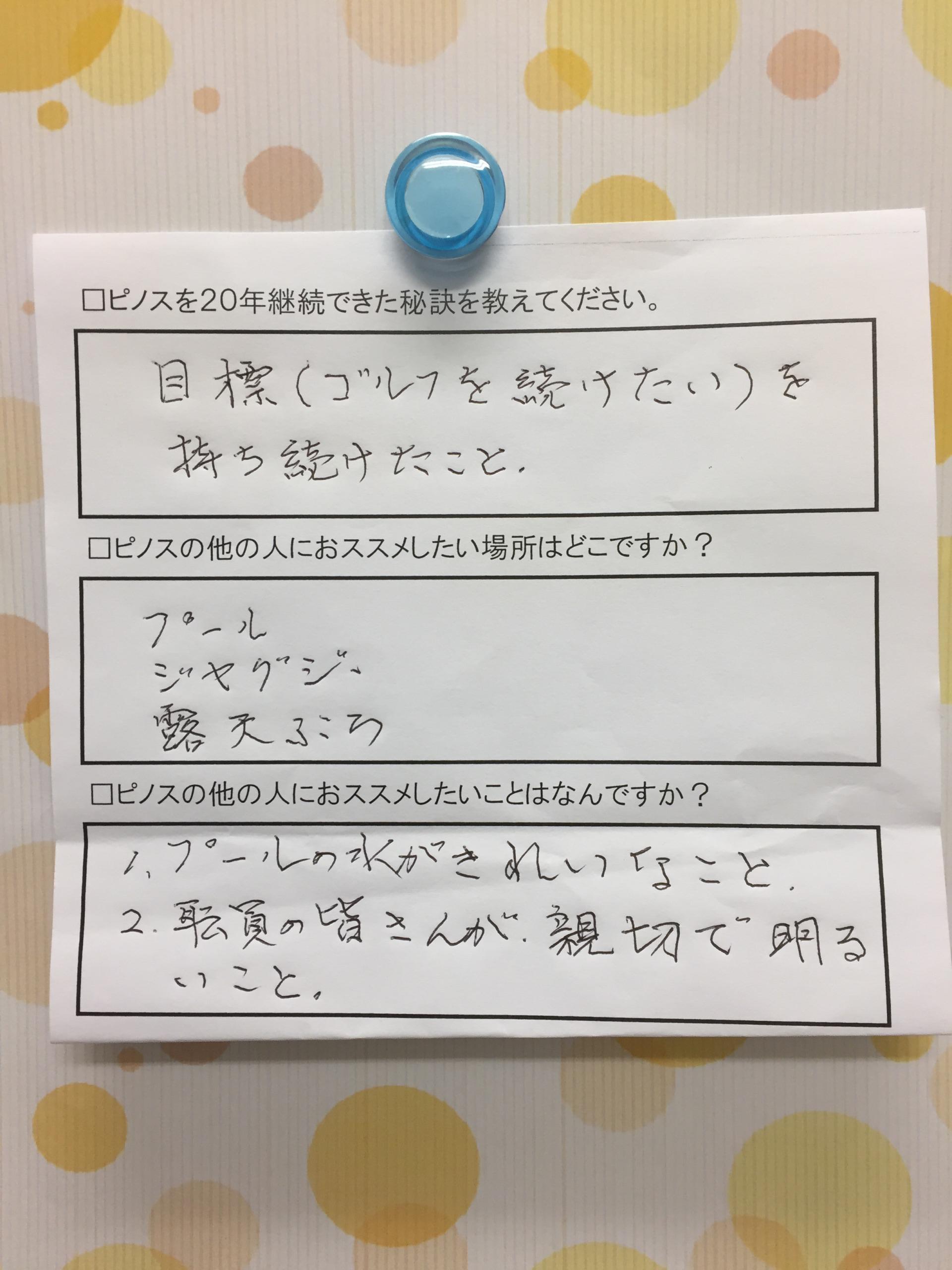 その中から、最年長の方のアンケートをご紹介します。