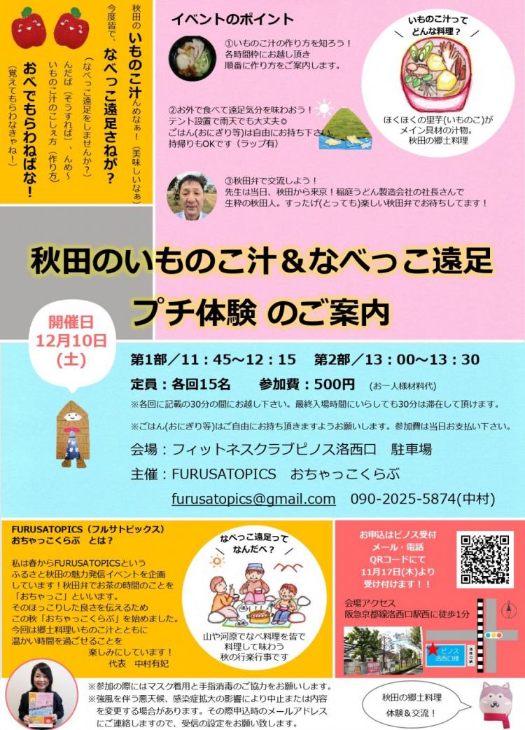 京都在住の秋田県出身の中村さん(ピノススタッフの中村さんとは別の人です・・)が秋田県の良いところを京都に人に伝えたい!!!!!!ということで今回のイベントとなりました。