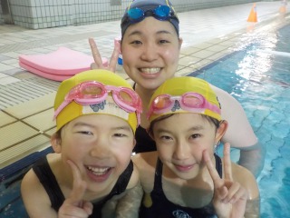 かがりちゃんは、クロールの呼吸が上に向いてしまう・バタフライ・平泳ぎの確認であかねちゃんは、一度クロールに行ったが
