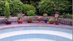 プールのジャグジーに新しいお花を植えました。
