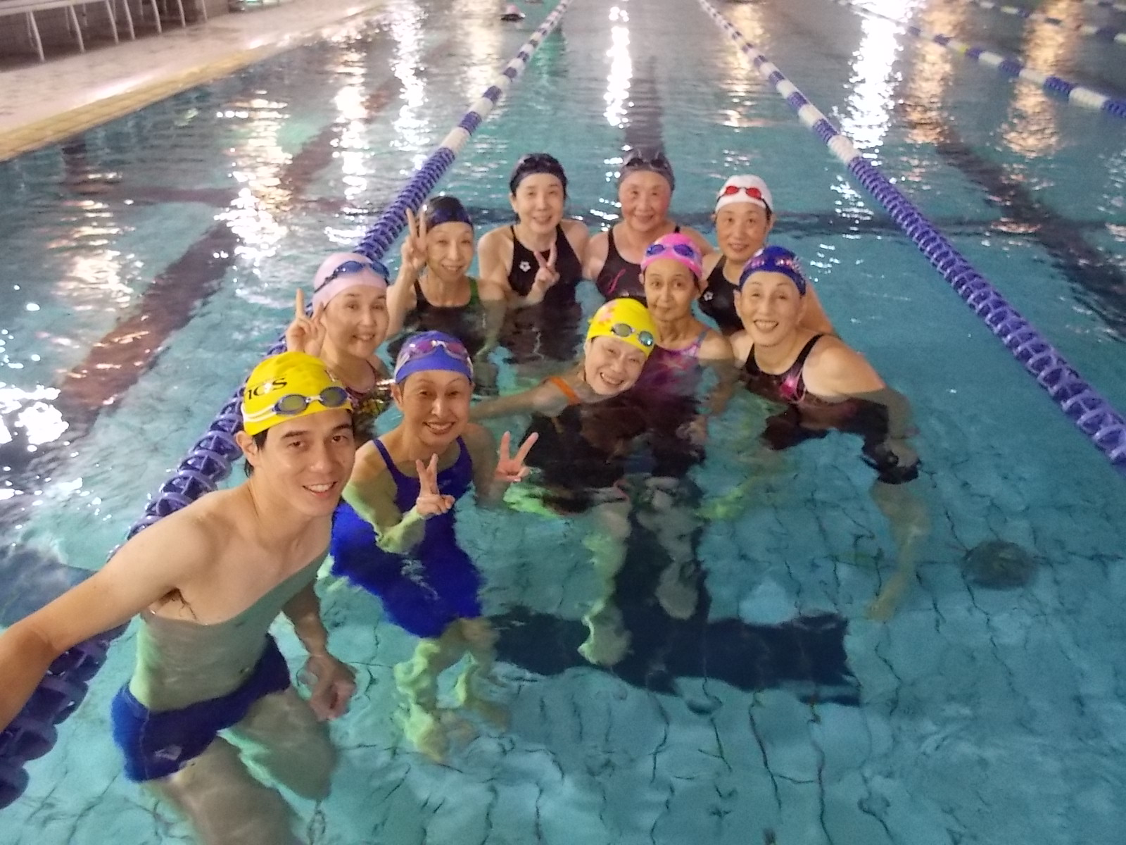 私、西本の水曜日クラスは9名いらっしゃるのですが、全員が完泳できるようスクール以外の時間にも集まって練習を積み重ねて来られました。時には「私はできない」と弱音を吐かれる時もありましたが、「そんなん言わず、皆で頑張ろう」と励まし合い当日を迎えました。