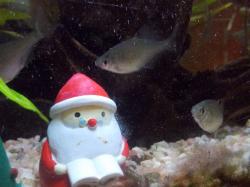 ピノス玄関の水槽に今年もサンタさんが来てくれました。