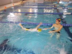 ラッコクラスは、クロールの息継ぎの練習や、背面キックの練習をします。