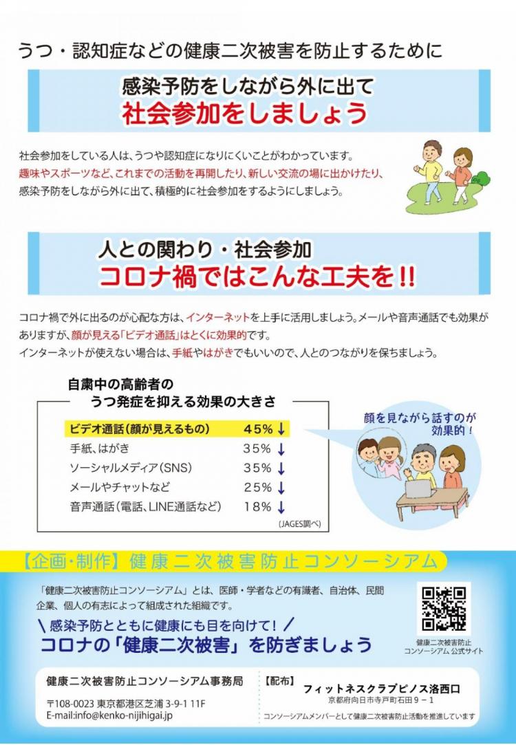 コロナ禍、外出が減ると人との関わりが大幅に減少し、そのことが原因で健康二次被害が発生すると言われています。