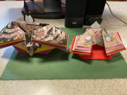 お客様から折り紙で作ったお雛様を頂き、フロントに飾らせていただいております