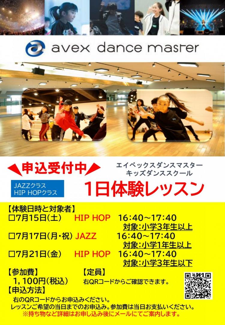 7月にピノスキッズダンススクールである“avex dance master”のダンス1日体験会を実施いたします。
