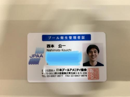 講習会の最後には考課試験があり、無事“プール衛生管理者証”を取得できました。