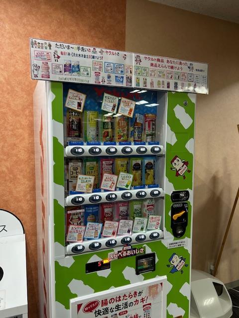 ヤクルト自動販売機 健康づくり 2024年10月15日 ヤクルトさんの自動販売機が3階に設置してあります。 気付くと利用者様に分かりやすくPOPを貼って くださっていました!!!! さすがヤクルトさんって感じです。