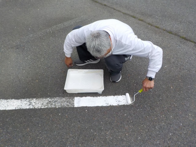 今日は、師匠の谷口さんに伝授してもらいながら第一ガレージの線引きを行いました。