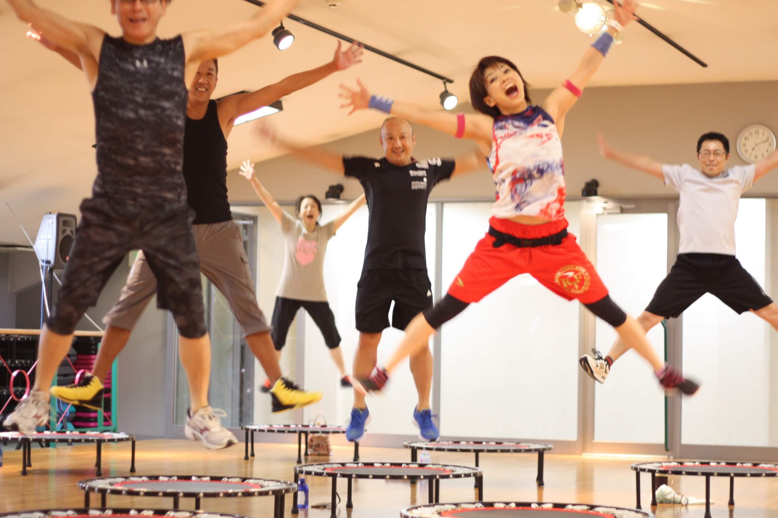 トランポリンを使用しますので、脂肪燃焼しやすく、また、楽しく動いて頂けます!