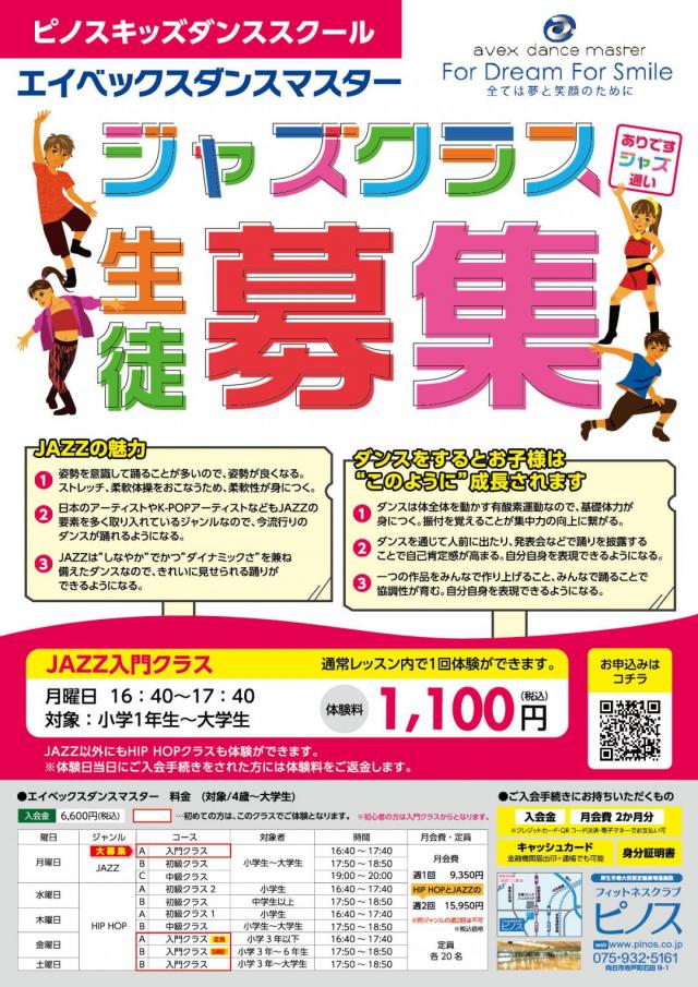 ピノスのキッズダンススクールである“エイベックスダンスマスター”のJAZZクラスの受講生を大募集しております!!