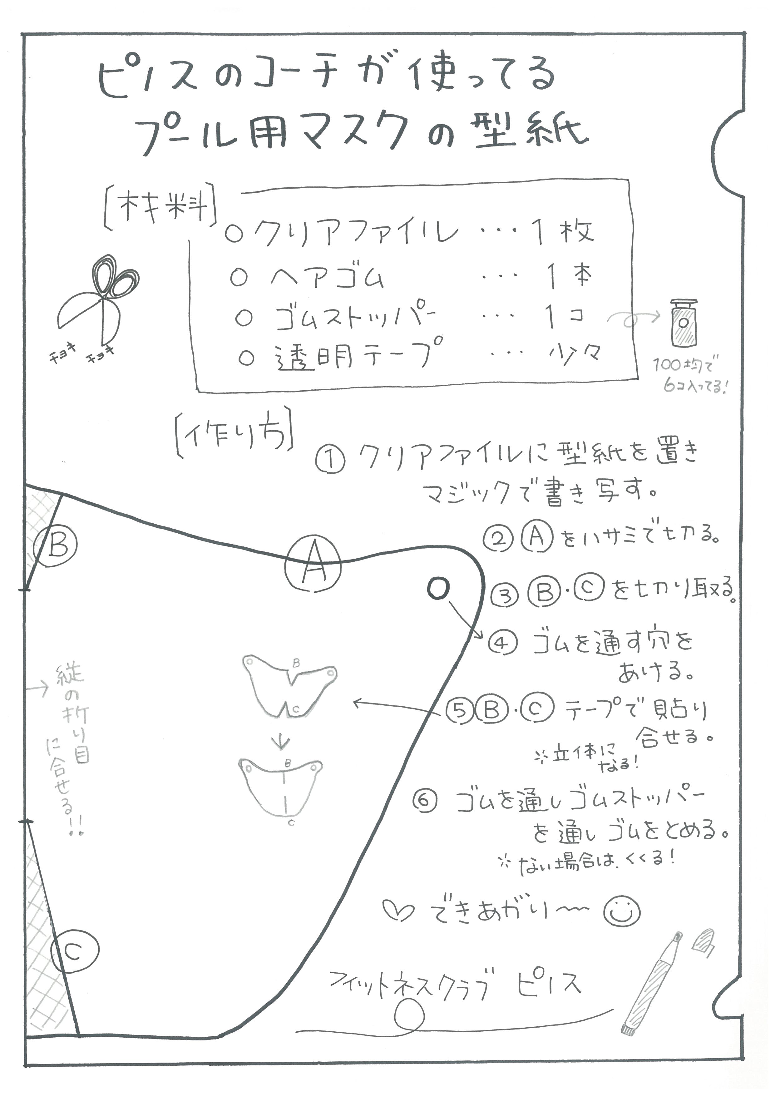 会員様から、そのマスクの作り方教えて!というお声があり、今回山崎コーチが作り方をまとめてくれました。