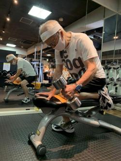 10㌔の重りを持って、腕周りのトレーニングを左右均等にされていました。