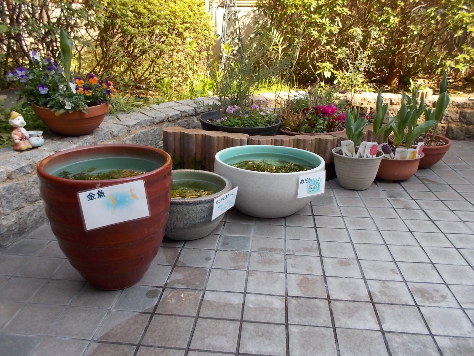 メダカさんも金魚さんも目覚め元気よくスイスイ泳いでいます。