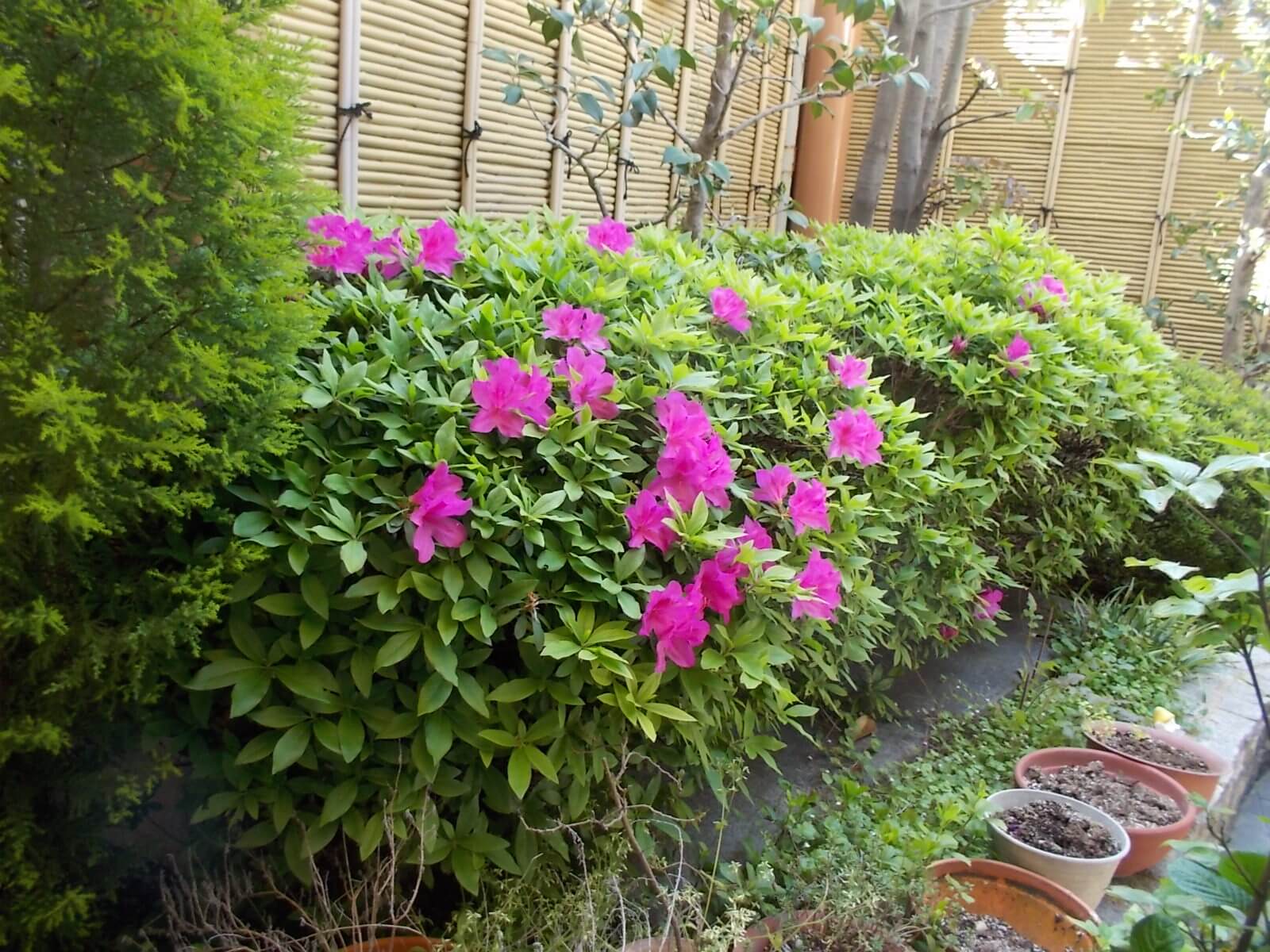ピノスの玄関横やジャグジーにツツジが咲いてきました。