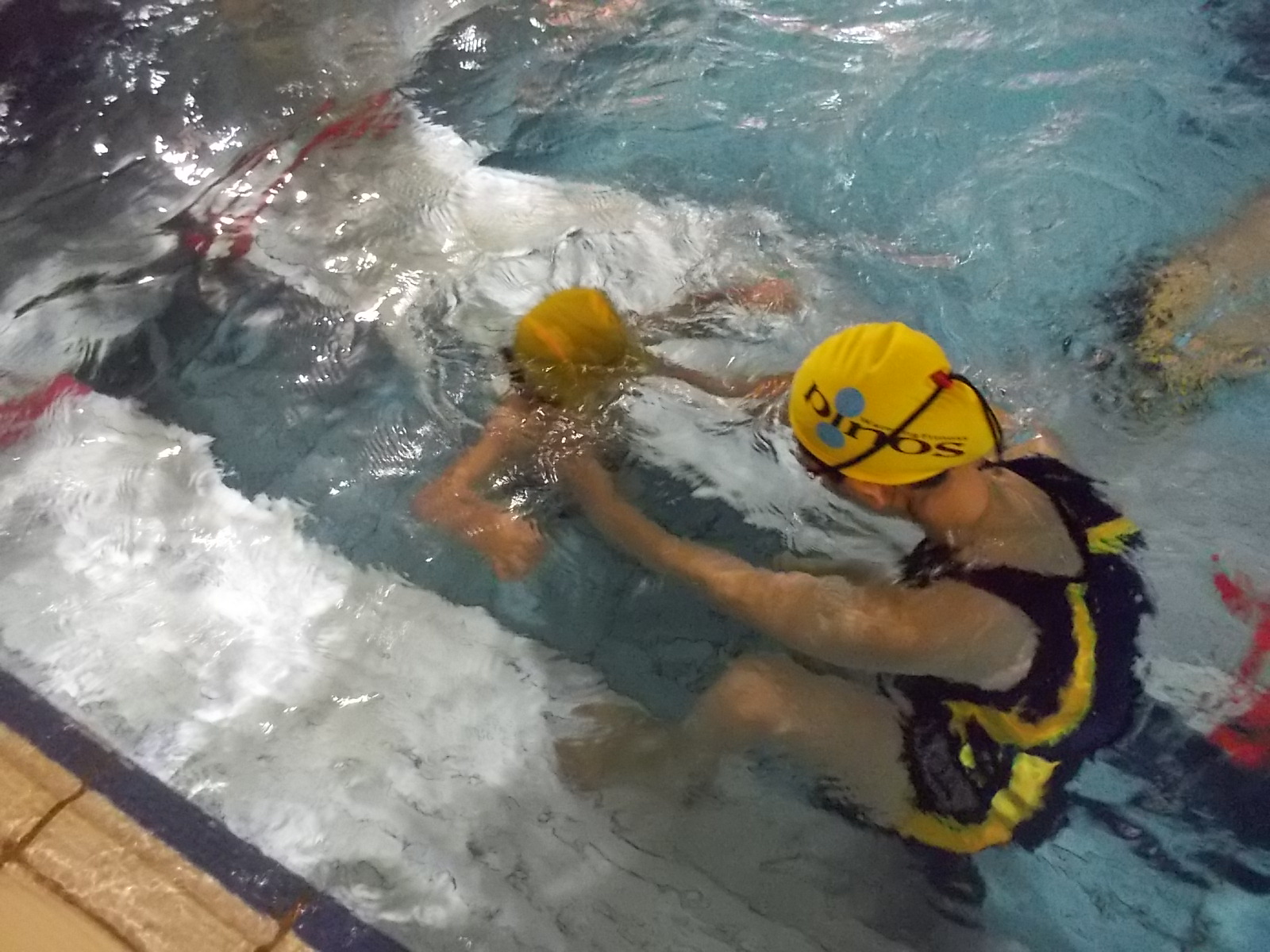 ボビングは、台の上だけではなく、プールの底からジャンプする練習を
