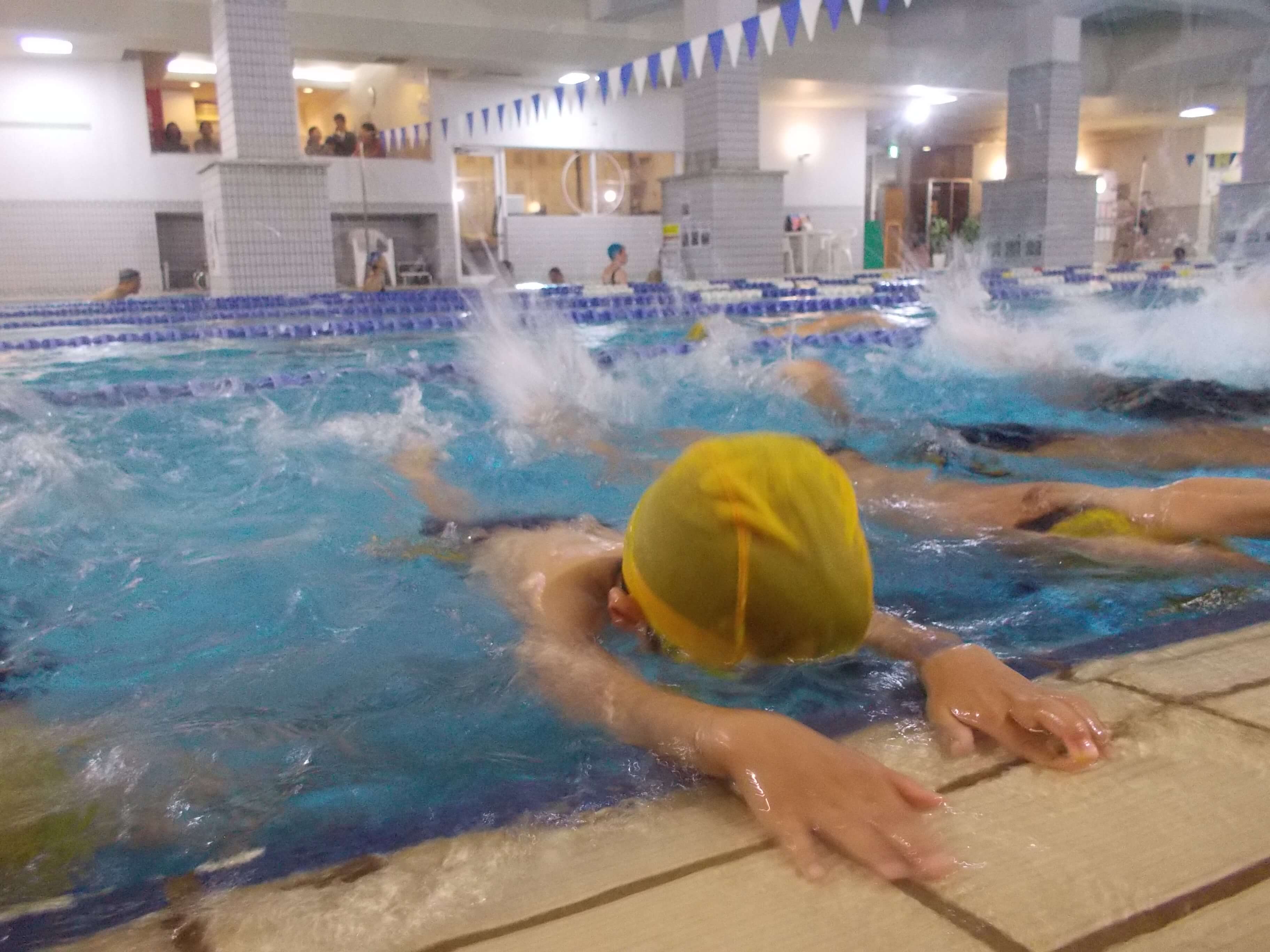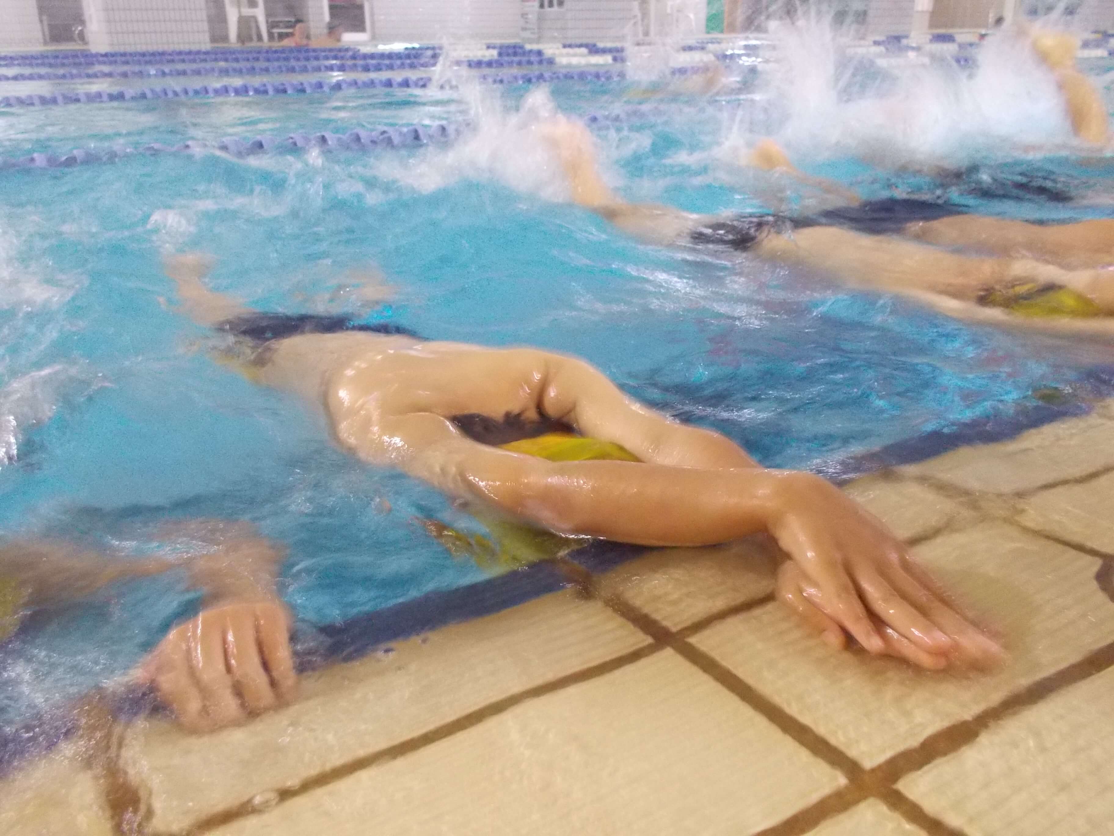 いよいよ、クロールの練習で手をまわしています…。